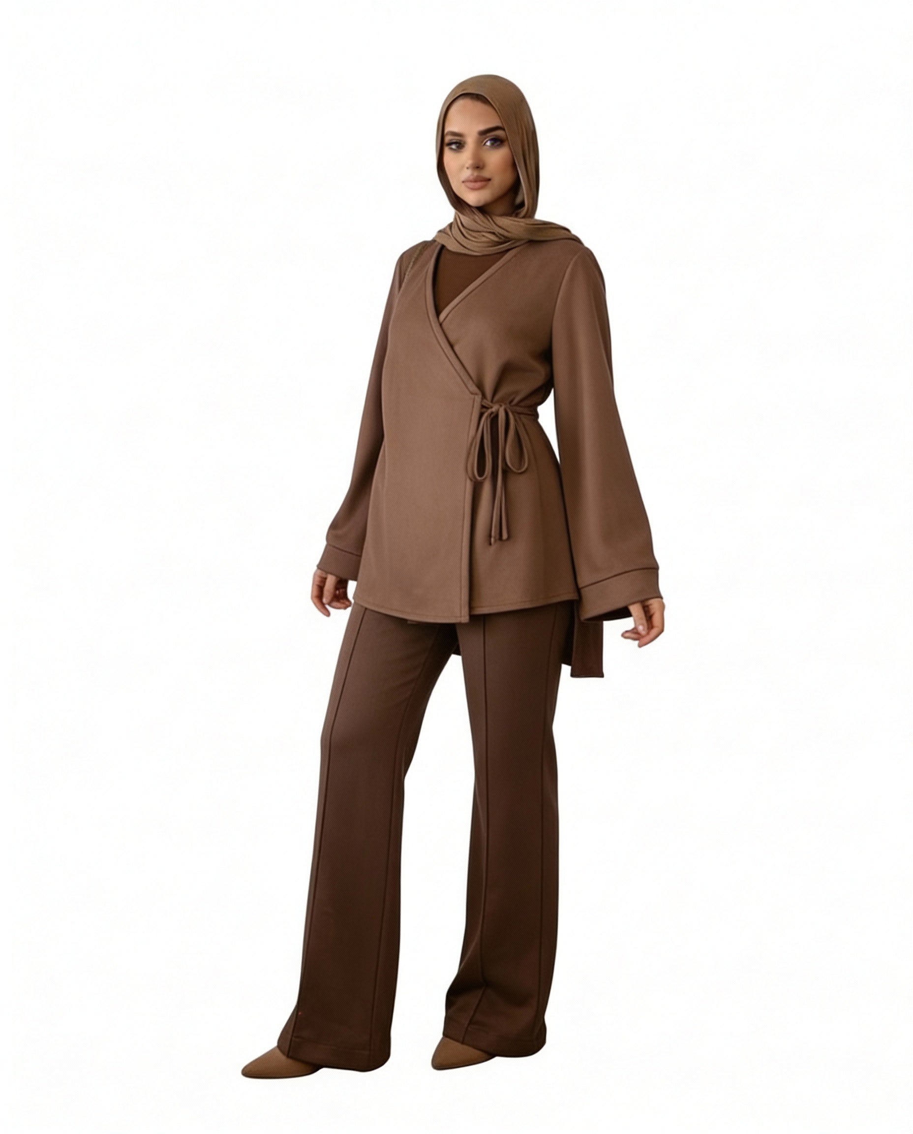 سوت شتوي لفّ (Wrap) – لون بني