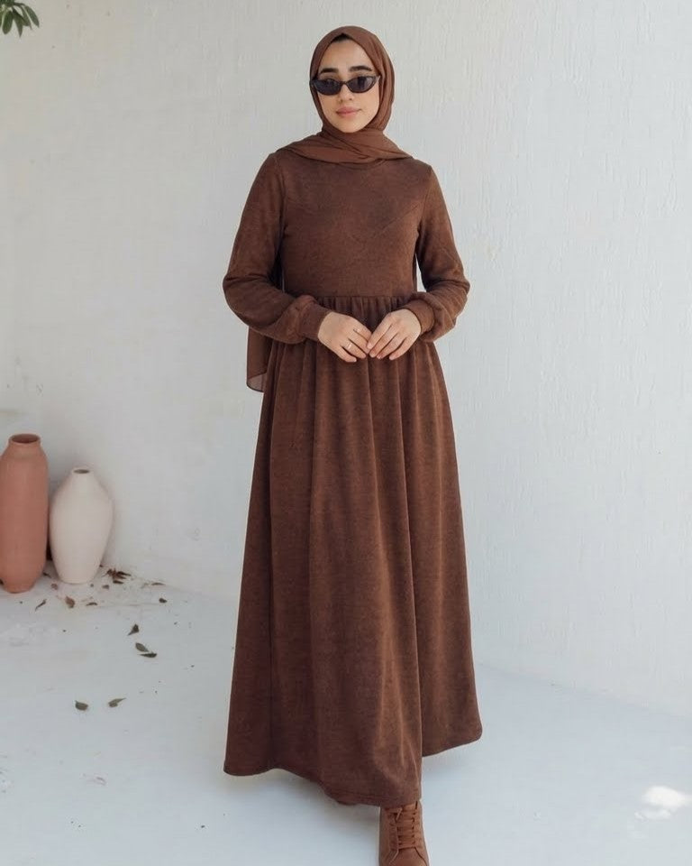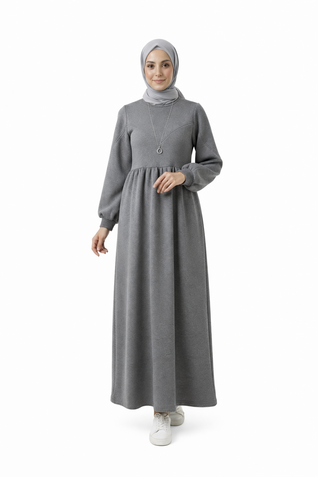 دريس شتوي بتصميم بسيط وعملي، مناسب للاستخدام اليومي والخروجات في الأجواء الباردة. القَصّة مريحة وواسعة من الأسفل، مع تحديد ناعم عند منطقة الصدر بيدي شكل أنيق ومتناسق من غير ضيق.