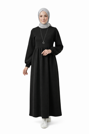 جواء الباردة. القَصّة مريحة وواسعة من الأسفل، مع تحديد ناعم عند منطقة الصدر بيدي شكل أنيق ومتناسق من غير ضيق.
